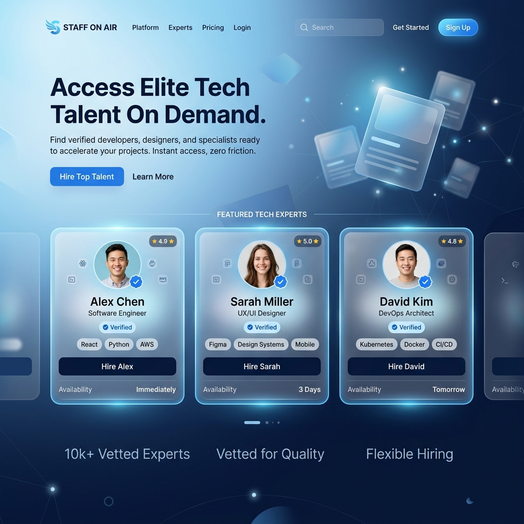 A talent-on-demand ecosystem for scaling engineering teams with AI-vetted specialized developers and QA experts.